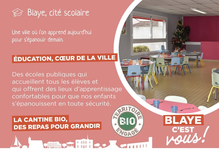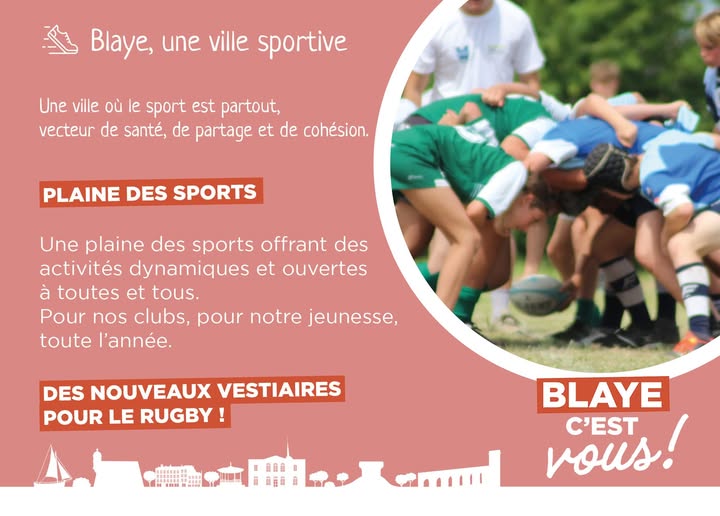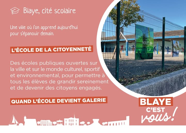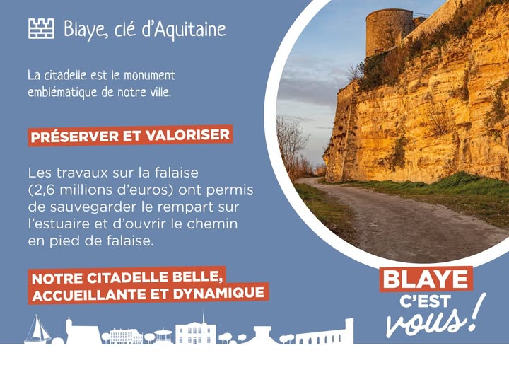 Chaque semaine, nous aborderons désormais les grandes thématiques de notre projet qui structurent l’action municipale et l’avenir de Blaye : culture, sport, cadre de vie, attractivité, développement économique, jeunesse, solidarités, environnement…