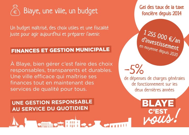 – Maintenir une fiscalité stable, avec le gel de la taxe foncière communale pour préserver le pouvoir d’achat des Blayaises et des Blayais