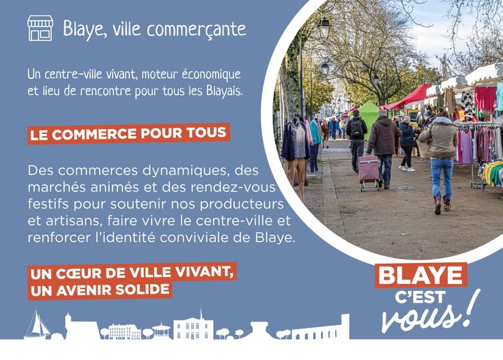 – Consolider et soutenir les marchés, véritables piliers de la vie locale et de la convivialité blayaise.