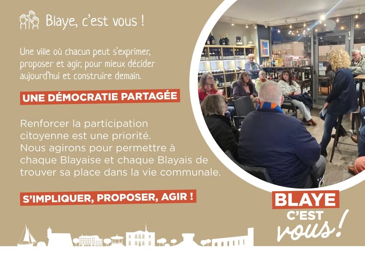 Chaque semaine, nous aborderons désormais les grandes thématiques de notre projet qui structurent l’action municipale et l’avenir de Blaye : culture, sport, cadre de vie, attractivité, développement économique, jeunesse, solidarités, environnement…
